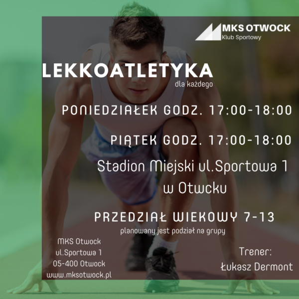 Pierwsze zajęcia 11.09.2023 g.17:00 Stadion Miejski zapraszamy pierwsze dwa treningi są bezpłatne. Koszt zajęć to 120zł za dwa treningi w tygodniu po 60 min.